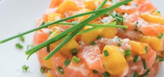 -Gravlax de saumon à la peluche d'aneth, moutarde au miel et chantilly wasabi - 14,00 euros